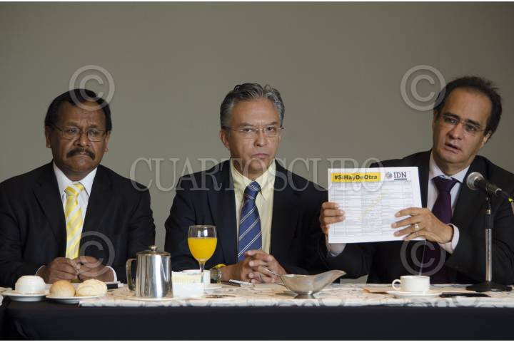 MÉXICO, D.F., 05MAYO2014.- Enrique Vargas, secretario del CEN PRD DF. René Bejarano, dirigente de la Izquierda Democrática Nacional (IDN), unas de las llamadas “tribus” del Partido de la Revolución Democrática, presentó el documento “Sí hay de otra: estrategias de insurgencia civil pacífica”, cuyo objetivo, de acuerdo con lo dicho por el líder es provocar que México avance hacia la justicia y libertad a nivel nacional a través de mil 442 acciones, entre éstas marchas, mítines, pláticas, recolección de firmas en contra de las reformas del Ejecutivo, y talleres. Dichas acciones serán puestas en marcha en el marco del 25 Aniversario del PRD y hasta el 15 de septiembre del año en curso. Alejandro Sánchez Camacho, secretario general del PRD y Enrique Vargas, secretario del CEN PRD a nivel Distrito Federal, acudieron a la presentación de la estrategia “Sí hay de otra”. FOTO: MARÍA JOSÉ MARTÍNEZ /CUARTOSCURO.COM