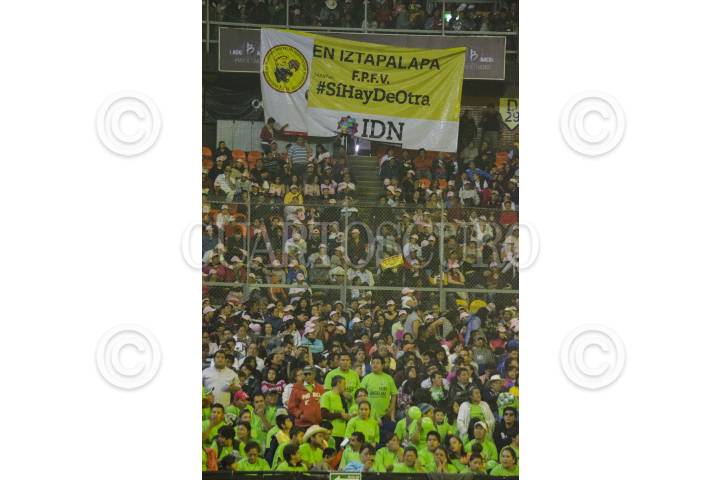 MÉXICO, D.F., 31MAYO2014.- Simpatizantes del movimiento arribaron desde las principales delegaciones del Distrito Federal hasta el Palacio de los Deportes en camiones de transporte público. FOTO: MARÍA JOSÉ MARTÍNEZ /CUARTOSCURO.COM