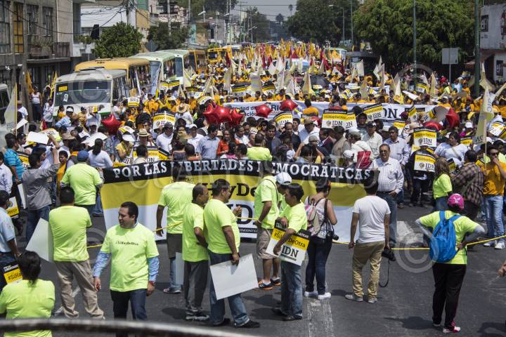 MEXICO, D.F.,14JUNIO2014.- Un contingente de aproximadamente cinco mil personas marchó esta mañana desde la Glorieta de Peralvillo hasta la Villa en apoyo al movimiento Izquierda Democrática Nacional, encabezado por René Bejarano,quien estuvo presente en la marcha acompañado de diputados y líderes capitalinos del PRD y otros movimientos. FOTO: DAVID POLO /CUARTOSCURO.COM