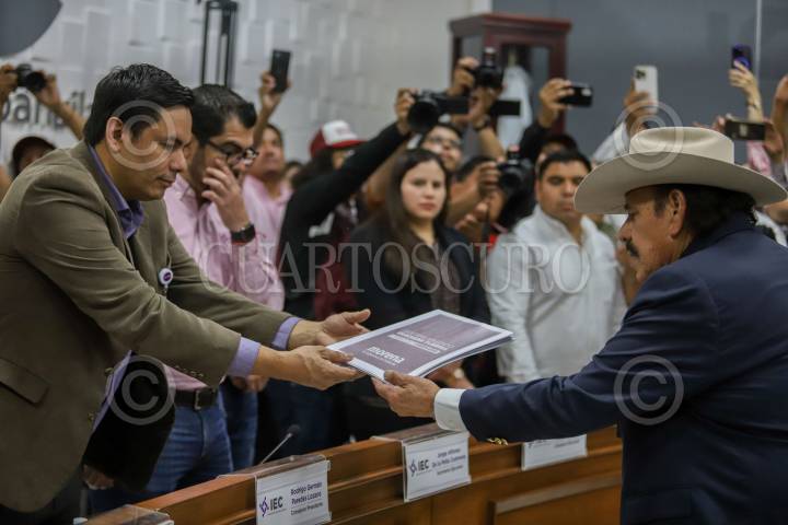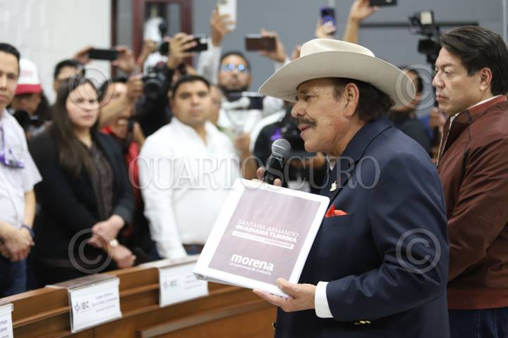 Armando Guadiana, senador con licencia de Morena, se registró como candidato a la gubernatura ante el Instituto Electoral de Coahuila. Lo acompañaron simpatizantes, Mario Delgado, presidente del partido y la secretaria general, Citlalli Hernández.