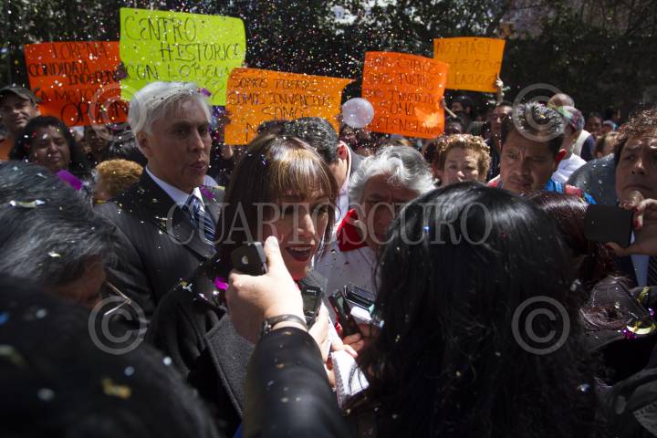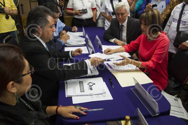 MÉXICO, D.F., 16MARZO2015.- Lorena Osornio Elizondo, nuera de la líder de comerciantes ambulantes del Centro Histórico, Alejandra Barrios Richard y candidata independiente a la jefatura delegacional en Cuauhtémoc, se registró hoy ante el Instituto Electoral del Distrito Federal (IEDF). Osornio Elizando, casada con el ex diputado local del PRI, Sergio Jiménez Barrios, acudió a la cabecera distrital del IEDF ubicada en la colonia Santa María Insurgentes. Ella reunió 18 mil firmas que le permitieron ser registrada como candidata independiente. FOTO: ISABEL MATEOS /CUARTOSCURO.COM