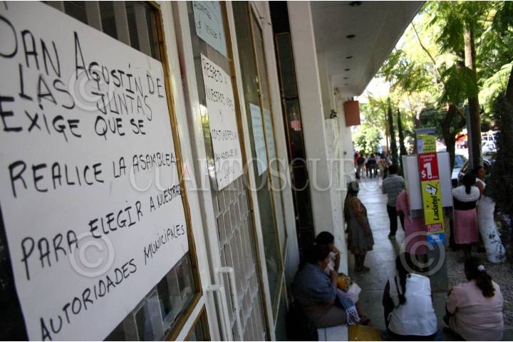 OAXACA, OAXACA. 09ENERO2007.- Habitantes de san Agustín de las juntas, bloquearon este medio día las instalaciones del IEE (instituto estatal electoral) donde exigen el respeto a sus usos y costumbres para definir a sus autoridades municipales. FOTO: MAX NUÑEZ/CUARTOSCURO.COM