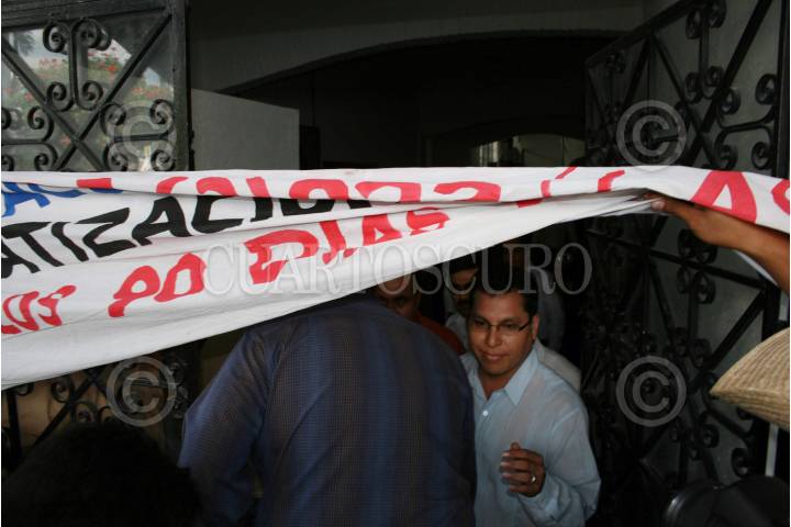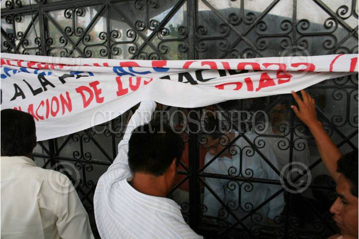 CHILPANCINGO, GUERRERO, 06OCTUBRE2008.- Maestros de la Coordinadora Estatal de los Trabajadores de la Educación en Guerrero (CETEG), tomaron las instalaciones del Instituto Electoral del Estado de Guerrero (IEEG), esto en protesta contra la Alianza por la Calidad de la Educación (ACE), donde exigieron la intervención del organo electoral como intermediaros en este conflicto magisterial. FOTO: OSCAR ALVARADO/CUARTOSCURO.COM