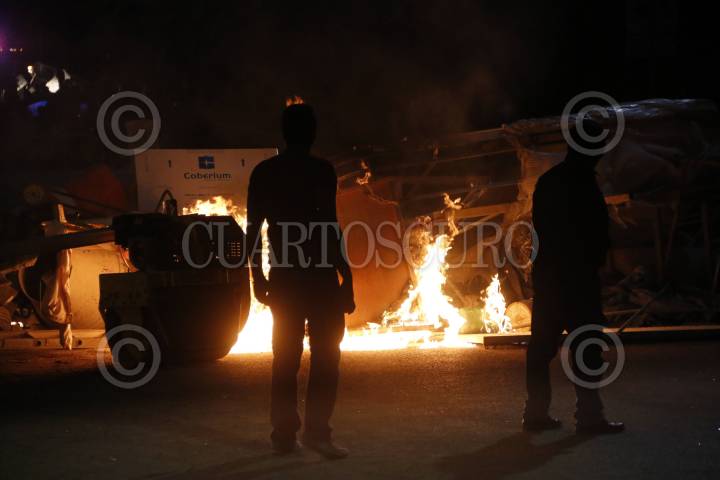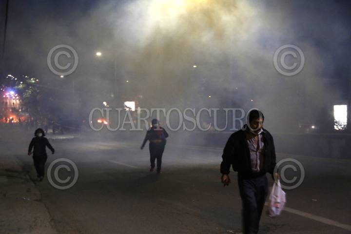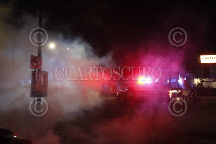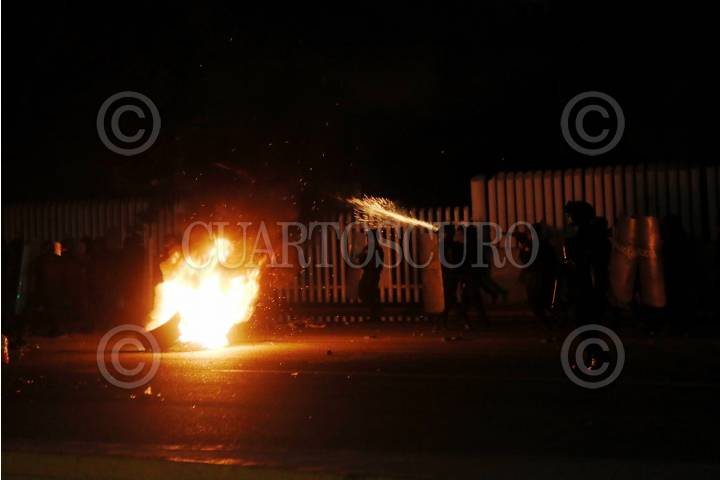 OAXACA, OAXACA., 11JUNIO2016.- Policías estatales desalojaron durante la noche de este sábado y madrugada del domingo a los profesores de la sección 22 que mantenían un bloqueo y la toma del Instituto Estatal de Educación Pública de Oaxaca (IEEPO). Con gases lacrimógenos los agentes estatales replegaron a los mentores quienes a su paso hacia el zócalo de la ciudad montaron algunas barricadas. FOTO: ARTURO PÉREZ ALFONSO /CUARTOSCURO.COM