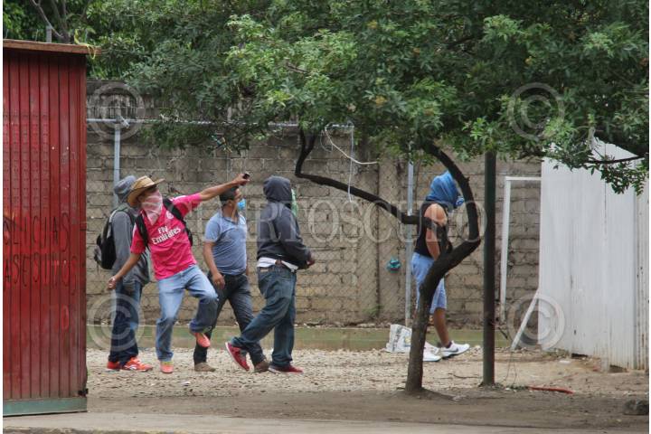 OAXACA, OAXACA, 20JUNIO2016.- Miles de profesores pertenecientes a la sección 22 de la CNTE marcharon por las calles de Oaxaca para repudiar el fallido desalojo realizado el pasado domingo en los municipios de Asunción Nochixtlán, San Pablo Huitzo y en la ciudad de Oaxaca. Durante la manifestación encapuchados lanzaron pedradas y petardos en contra de los policías federales que resguardaban las instalaciones del Instituto Estatal de Educación Pública de Oaxaca. FOTO: ARTURO PÉREZ ALFONSO /CUARTOSCURO.COM