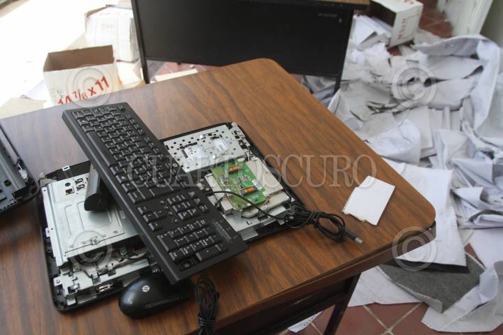 OAXAQC, OAXACA., 08SEPTIEMBRE2016.- Egresados de las once escuelas normales vándalo zarpan este viernes las oficinas de Certificación del Instituto Estatal de Educación Publica de Oaxaca (IEEPO) ubicadas en la calle de Abasolo de la cuidad de Oaxaca. En dicho sitio realizaron distintos destrozos y presuntamente robaron equipos de cómputo personales y teléfonos celulares. FOTO: ARTURO PÉREZ ALFONSO /CUARTOSCURO.COM
