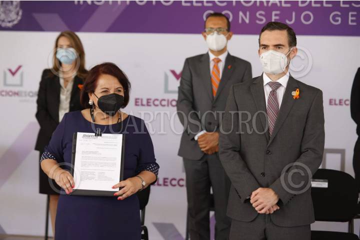 La ex magistrada Celia Maya se registró por Morena para conteder a la gubernatura de Querétaro, ante el IEEQ.