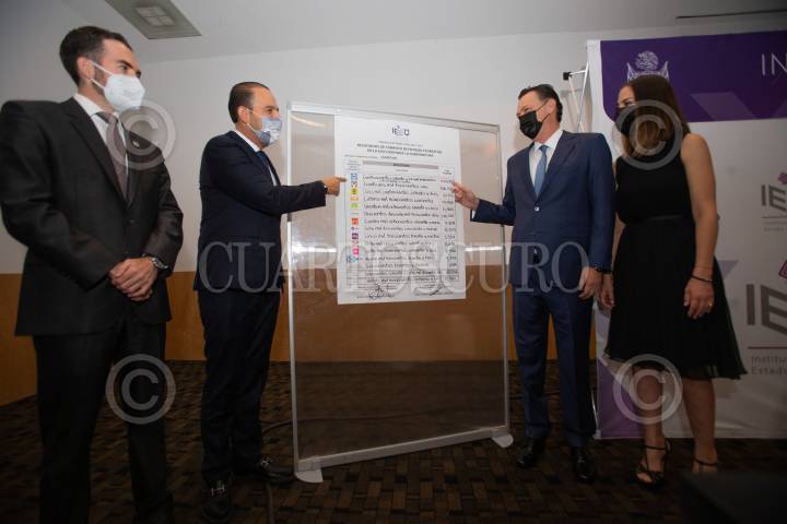 Mauricio Kuri González recibió su constancia de mayoría en las elecciones de gobernador de Querétaro, en el Instituto Electoral del Estado de Querétaro. Lo acompaño Marko Cortés, líder del PAN.