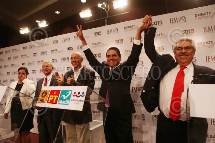 MORELIA, MICHOACÁN, 29ABRIL2015.- Hoy, se llevó a cabo el debate entre los 6 candidatos a Gobernador organizado por el Instituto Electoral de Michoacán ( IEM ), Luisa María Calderón del PAN; María de la Luz Nuñez de MORENA; Gerardo Nuñez del Partido Humanista; Manuel Antúnez Oviedo de Movimiento Ciudadano; Silvano Aureoles Conejo del PRD; Ascención Orihuela del PRI-PVEM; efectuado en el Centro de Convenciones de la capital michoacan, cuya duración fue de aproximadamente 2 horas. FOTO: ALAN ORTEGA /CUARTOSCURO.COM