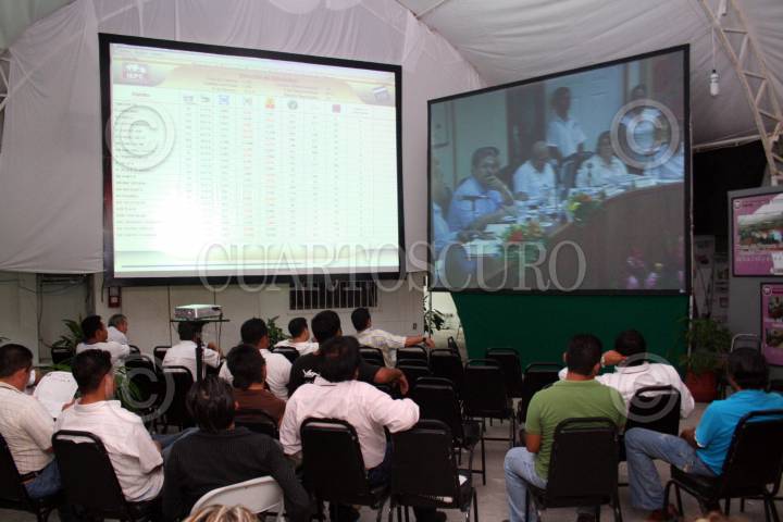 VILLAHERMOSA, TABASCO 15OCTUBRE2006.- El Instituto Electoral y Participación Ciudadana de Tabasco (IEPCT) se vió repleto de gente hasta altas horas de la madrugada por la sesión en la cual los consejeros determinaron el proceso electoral para elegir Gobernador, Ediles y Diputados locales. FOTO: MARCO POLO GUZMÁN HERNÁNDEZ/CUARTOSCURO.COM