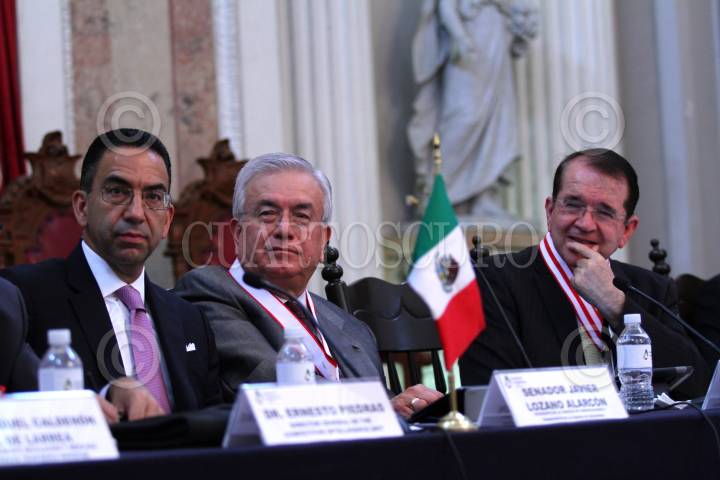 CIUDAD DE MÉXICO, 28JULIO2016.- Javier Lozano Alarcón, senador por el PAN, Eduardo Alberto Castañon Cruz, presidente de la Comisión de especialidades de ingeniería en comunicaciones y electrónica y Jaime Parada Ávila, presidente de la Academia de Ingeniería de México, durante la " Mesa redonda Red Compartida Mayorista de Telecomunicaciones", realizada en el Palacio de Minería por la Academia de Ingeniería de México. FOTO: ADOLFO VLADIMIR / CUARTOSCURO.COM