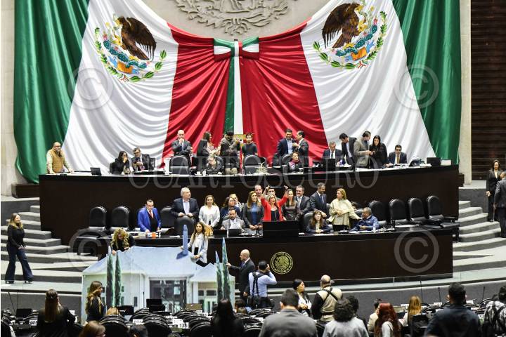 CIUDAD DE MÉXICO, 21NOVIEMBRE2024.- Legisladores del grupo parlamentario del PRI, durante la continuación de la sesión ordinaria de la Cámara de Diputados en la que se discuten las reservas del dictamen en materia de simplificación orgánica. FOTO: MARIO JASSO/CUARTOSCURO.COM