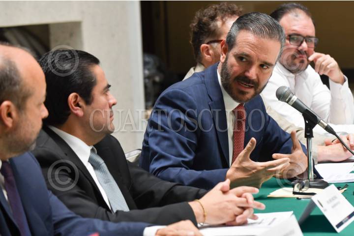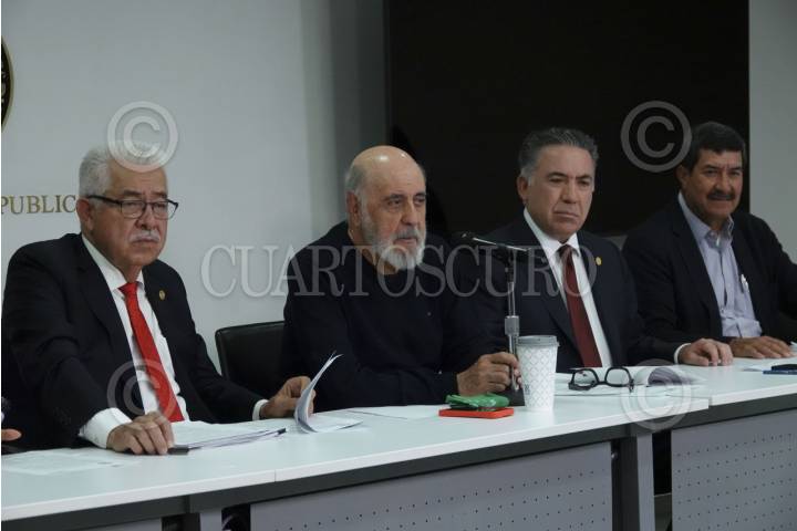 CIUDAD DE MÉXICO, 30ABRIL2025.- Los senadores Alejandro Esquer, José Antonio Cruz Álvarez, Enrique Inzunza Y Javier Corral durante la conferencia en el Senado de la República en donde dieron detalles respecto a las modificaciones de la Ley Telecomunicaciones, así como designación de fechas para los conversatorios al respectos FOTO: GALO CAÑAS/CUARTOSCURO.COM