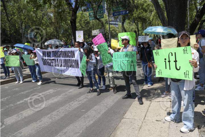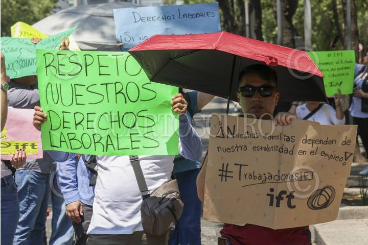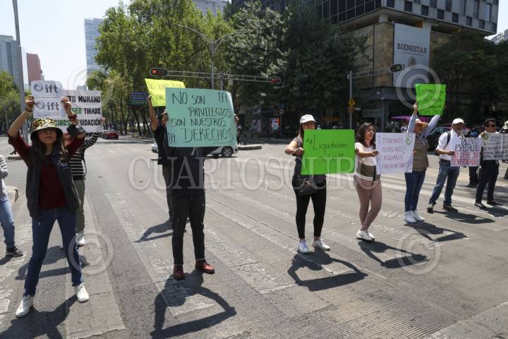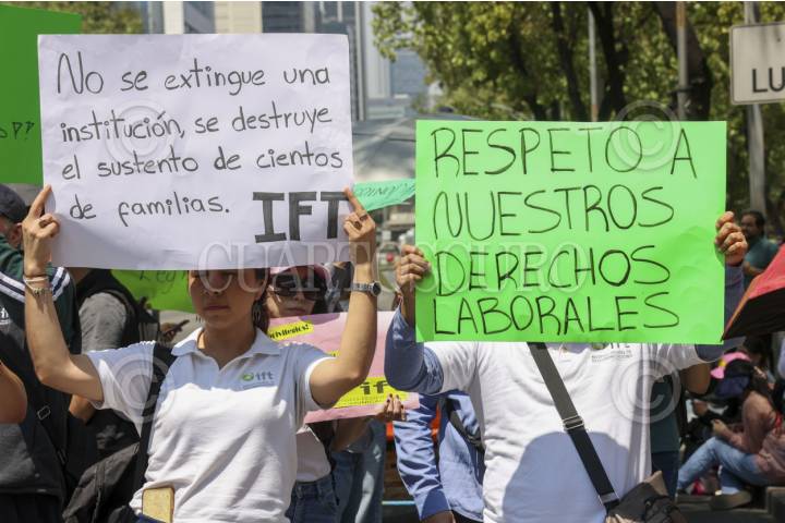 CIUDAD DE MÉXICO, 08MAYO2025.- Trabajadores del Instituto Federal de Telecomunicaciones bloquearon un carril de Reforma a la altura del Senado para demandar claridad en el proceso de sus liquidaciones ante la inminente desaparición del IFT, tras las modificaciones en las leyes de los órganos autónomos. FOTO: MOISÉS PABLO/CUARTOSCURO.COM