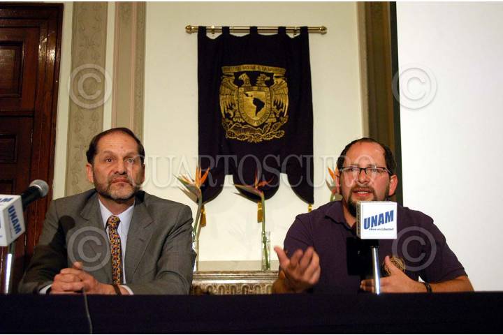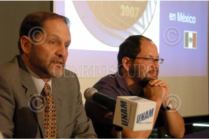 MÉXICO D.F. 19FEBRERO2007.- José Francisco Valdés Galicia, director del IGf, y el experto Américo González, durante el inicio de los festejos del Año Heliofísico Internacional, que en México será encabezado por la UNAM. FOTO: UNAM/CUARTOSCURO.COM