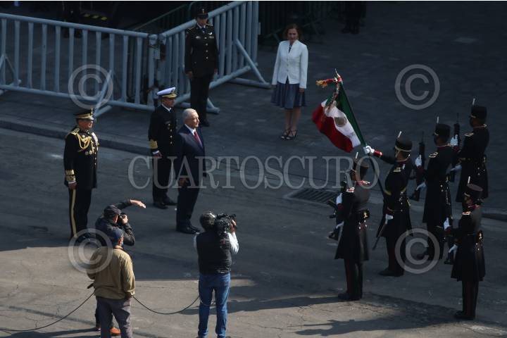 Andrés Manuel López Obrador, presidente Constitucional de los Estados Unidos Mexicanos, encabezó el Desfile en conmemoración al III Inicio de la Revolución Mexicana, realizado en la plancha del Zócalo capitalino