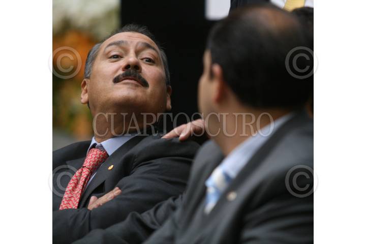 MÉXICO, D.F., 27OCTUBRE2009.- Daniel Gimenez Cacho conversa con el Senador Carlos Navarrete, durante a su visita al Senado para protestar contra los recortes al Imcine. FOTO: SÁSHENKA GUTIÉRREZ/CUARTOSCURO.COM