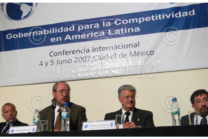 MÉXICO, D.F. 05JUNIO2007.- Conferencia internacional de la Organización de las Naciones Unidas en la que se trató el tema Gobernabilidad para la competitividad en América Latina. En la imagen Alfonso Sánchez del Senado de Desarrollo Regional durante su participación. FOTO: PATRICIA MORALES/CUARTOSCURO.COM