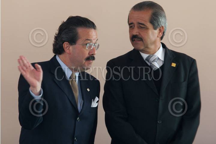 MÉXICO D.F., 10FEBRERO2009.- Juan Molinar Horcasitas titular de Instituto Mexicano del Seguro Social (IMSS) y el secretario de Salud Jose Angel Cordova Villalobos, inauguraron el centro de coordinación técnico de insumos, en un evento realizado en las instalaciones de la delegación general del IMSS. FOTO: RICARDO CASTELAN/CUARTOSCURO.COM