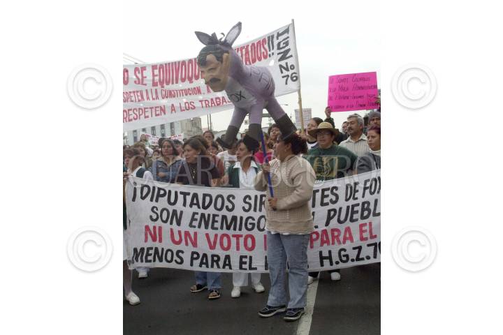 MEXDF 04AGOSTO2004.- Cientos de trabajadores sindicalizados del IMSS, se manifestaron contra las reformas a la ley de pensiones. FOTO:Eunice Adorno/CUARTOSCURO.COM