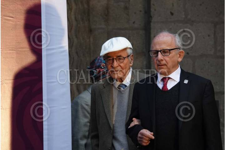 CIUDAD DE MÉXICO, 04FEBRERO2025.- Salvador Rueda Smithers, director del Museo Nacional de Historia, y Eduardo Matos Moctezuma, investigador y arqueólogo, durante la presentación del libro Historia de la arqueología del México antiguo realizada en el Museo Nacional de las Culturas del Mundo. FOTO: GRACIELA LÓPEZ/CUARTOSCURO.COM