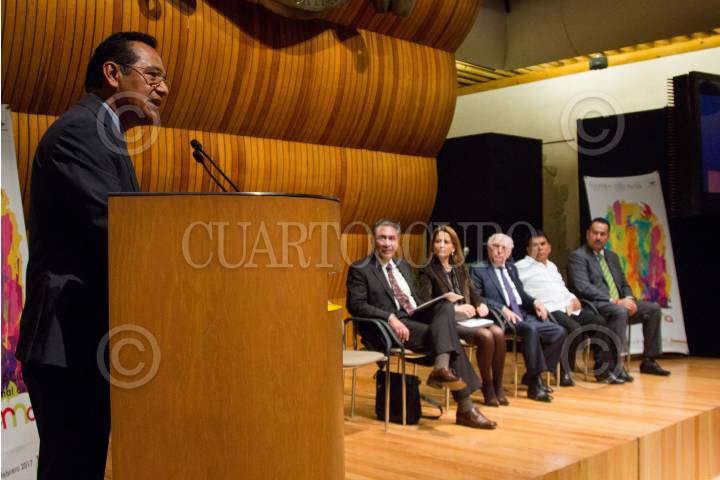 CIUDAD DE MÉXICO, 21FEBRERO2017.- Juan Gregorio Regino, director general del Instituto Nacional de Lenguas Indigenas; Luis Francisco Lara, secretario del Colegio Nacional; Jorge Gutiérrez Vázquez, subsecretario de Diversidad Cultura y Fomento a la Lectura; Nuria Sanz, representante de la UNESCO en México, y Vitálico Cándido Coheto, presidente de la Comisión de Asuntos Indígenas de la Cámara de Diputados, durante la ceremonia con motivo del Día de la Lengua Materna, celebrada en el Colegio de México. FOTO: GALO CAÑAS /CUARTOSCURO.COM