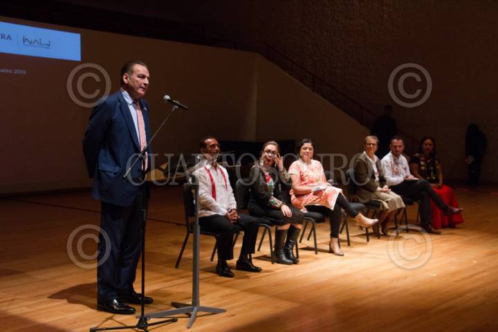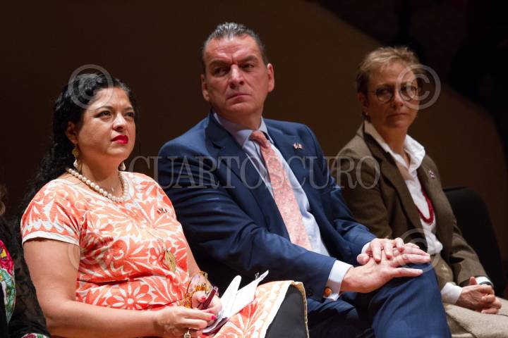 CIUDAD DE MÉXICO, 09AGOSTO2019.- Alejandra Frausto, secretaría de cultura federal y Pierre Alarie, embajador de Canadá en México, encabezaron la Ceremonia inaugural de la Feria de las Lenguas Indígenas Nacionales (FLIN) 2019, en el Centro Nacional de las Artes (CENART). FOTO: ROGELIO MORALES /CUARTOSCURO.COM