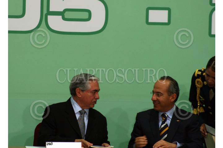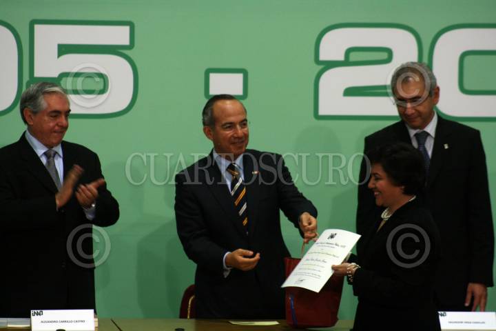 MÉXICO,D.F 18DICIEMBRE2007.- Alejandro Carrillo Castro Presidente del consejo directivo del Instituto Nacional de Administracón Pública ,Felipe Cañderon Hinojosa Presidente de los Estados Unidos Mexicanos entregan los premios INAP 2005 y 2006. FOTO: SASHENKA GUTIERREZ/CUARTOSCURO.COM