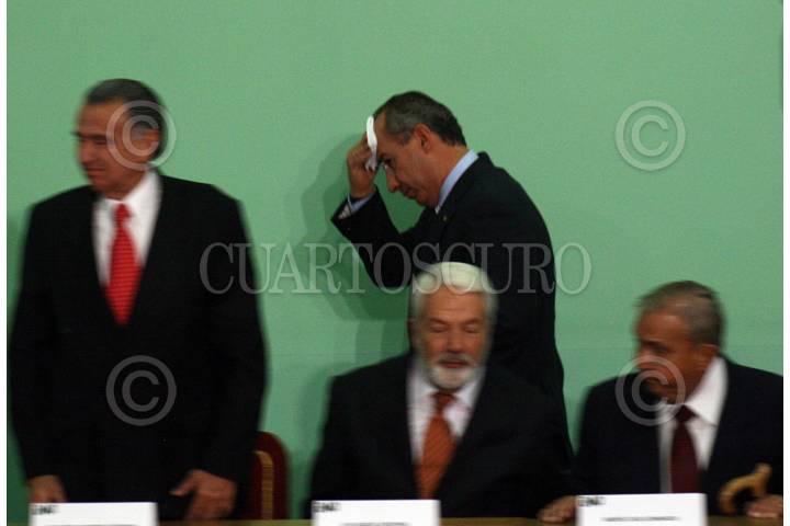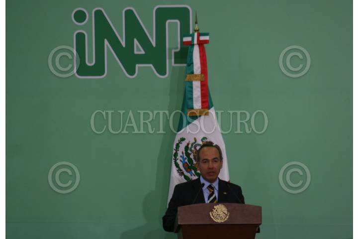 MÉXICO,D.F 18DICIEMBRE2007.-Felipe Calderon Hinojosa Presidente de los Estados Unidos Mexicanos durante la entrega de los premios INAP 2005 y 2006 en la residencia oficial de los pinos. FOTO: SASHENKA GUTIERREZ/CUARTOSCURO.COM