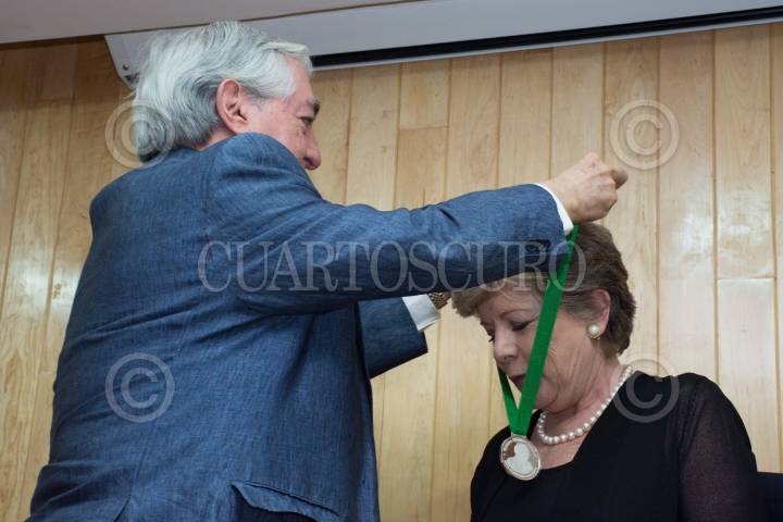CIUDAD DE MÉXICO, 02MAYO2017.- Alicia Bárcena, secretraria ejecutiva de la Comisión Económica para América Latina y el Caribe de las Naciones Unidas (CEPAL), recibió la medalla al Mérito Administrativo Internacional “Gustavo Martínez Caballas”, en compañía de Alejandro Carillo Castro, presidente del Consejo Directivo del INAP. Durante su discurso Bárcena reiteró que el desarrollo sostenible, así como la participación del sector público y privado para la creación de nuevas instituciones, son parte fundamental de los objetivos de Agenda 2020-2030. FOTO: MARIO JASSO /CUARTOSCURO.COM