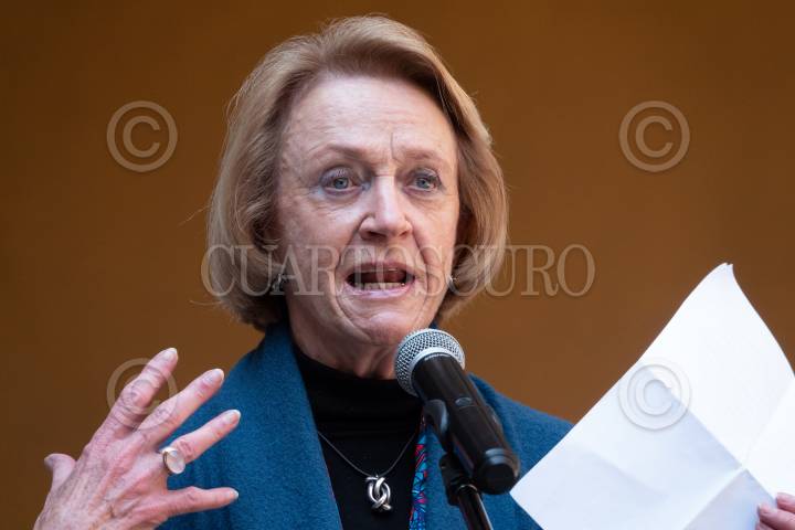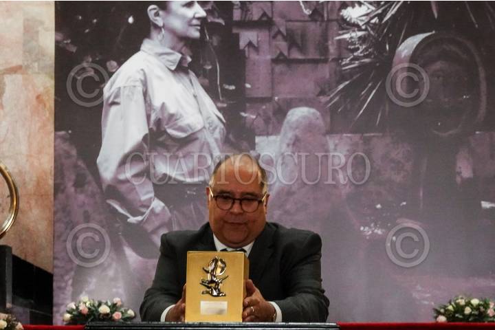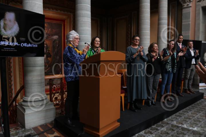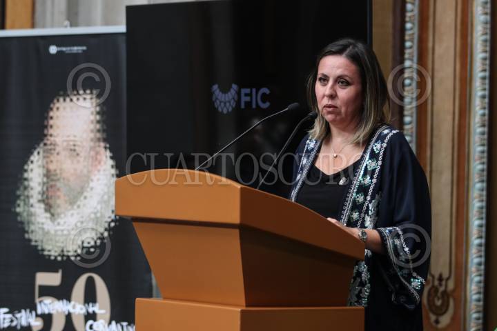Mariana Aymerich, directora general del Festival Internacional Cervantino durante la entrega de la presea Cervantino otorgada a Carmen Parra y que se llevó a cabo en el Teatro Juárez