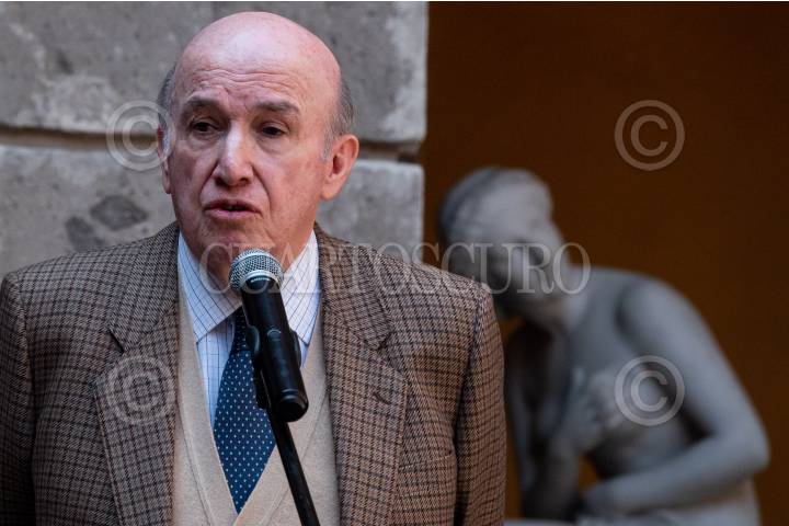 José Luis Martínez Hernández durante la inauguración “Manuel Felguérez: Una máquina estética” en el Museo Nacional de San Carlos.