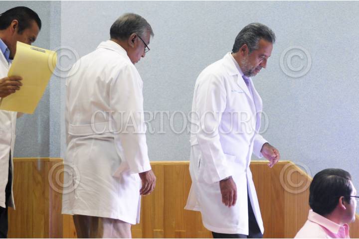 CIUDAD DE MÉXICO, 25JUNIO2025.- En esta ocasión, personal del Instituto de Servicios Periciales y Ciencias Forenses (INCIFO) que no respalda a los compañeros que exigen que se destituya a la directora, Patricia Crespo, así como al subdirector de Tanatología, Andrés Oriol por malas prácticas al interior del instituto. Refieren a que los señalamientos son difamaciones y que no existen estás cuestiones. Sin embargo, confirmaron que el video en donde se ve al subdirector fingir beber de un cráneo es real pero que no confirman que el audio lo sea. FOTO: GALO CAÑAS/CUARTOSCURO.COM