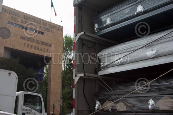 CIUDAD DE MÉXICO, 22SEPTIEMBRE2017.- Familiares y amigos de fallecidos en el terremoto del pasado martes acudieron al Instituto de Ciencias Forenses (Incifo) para realizar el reconocimiento de los cuerpos. En la image, ataúdes que presuntamente será regalados para los afectados. FOTO: GALO CAÑAS /CUARTOSCURO.COM
