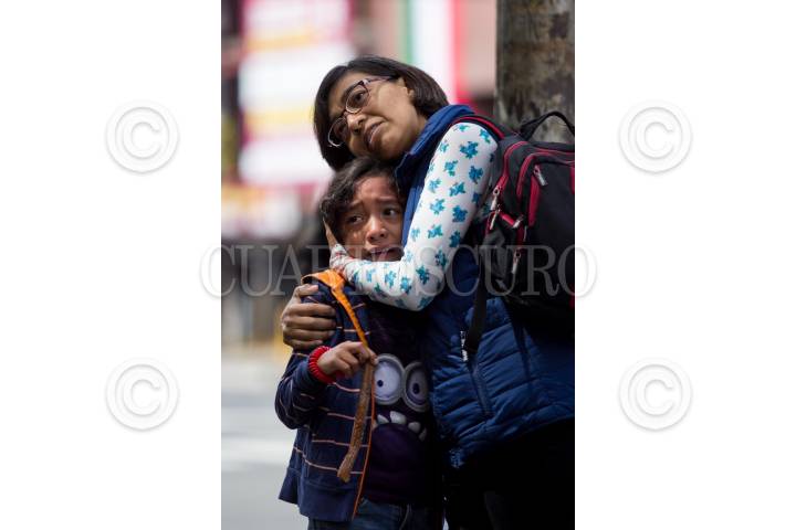 CIUDAD DE MÉXICO, 22SEPTIEMBRE2017.- Familiares y amigos de fallecidos en el terremoto del pasado martes acudieron al Instituto de Ciencias Forenses (Incifo) para realizar el reconocimiento de los cuerpos. En la imagen, un niño es abrazado por su madre tras continuar asustado por el sismo. FOTO: GALO CAÑAS /CUARTOSCURO.COM