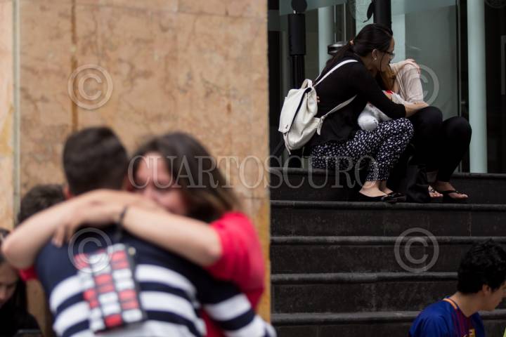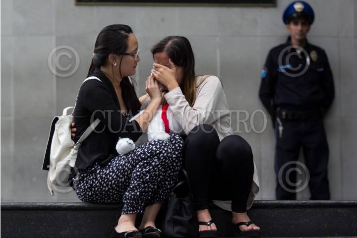CIUDAD DE MÉXICO, 22SEPTIEMBRE2017.- Familiares y amigos de fallecidos en el terremoto del pasado martes acudieron al Instituto de Ciencias Forenses (Incifo) para realizar el reconocimiento de los cuerpos. En la imagen, familiares de la joven taiwanesa Amy Huang fallecida en la fábrica de textiles de Chimalpopoca lloran al enterarse de la fatal noticia. FOTO: GALO CAÑAS /CUARTOSCURO.COM