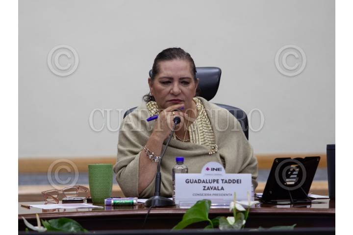 CIUDAD DE MÉXICO, 21AGOSTO2025.- Guadalupe Taddei, consejera presidenta del INE, durante la sesión extraordinaria de este jueves en el Instituto Nacional Electoral (INE). FOTO: DANIEL AUGUSTO/ CUARTOSCURO.COM