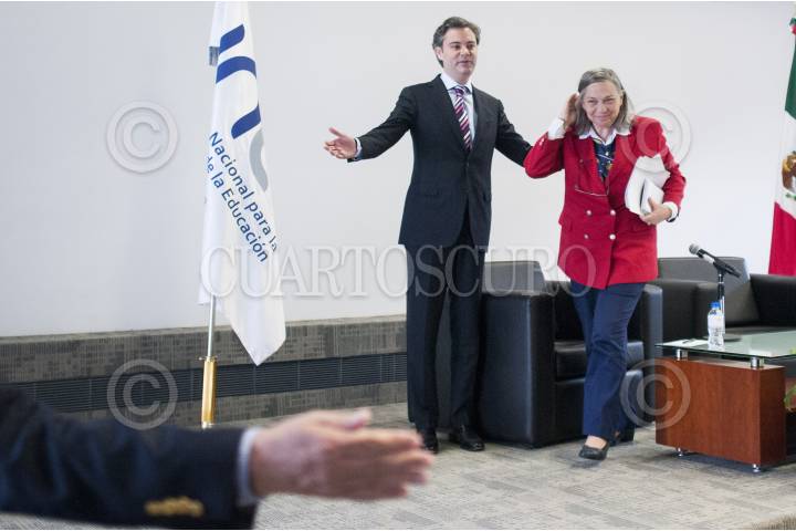 CIUDAD DE MÉXICO, 29JULIO2016.- Aurelio Nuño Mayer, secretario de la SEP y Sylvia Schmelkes, directora del Instituto Nacional de Evaluación Educativa, ofrecieron una conferencia de prensa al término de una reunión privada con los consejeros del INEE, en relación con los Foros de Consulta sobre el Modelo Educativo y la Propuesta Curricular para la Educación Obligatoria. FOTO: DIEGO SIMÓN SÁNCHEZ /CUARTOSCURO.COM