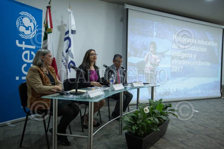 CIUDAD DE MÉXICO, 09AGOSTO2016.- Sylvia Schmelkes, presidente del INEE, Javier López, director del INALI, e Isabel Crowley, representante de UNICEF en México, durante la presentación del estudio "Panorama educativo de la población indígena 2015". FOTO: ISAAC ESQUIVEL /CUARTOSCURO.COM