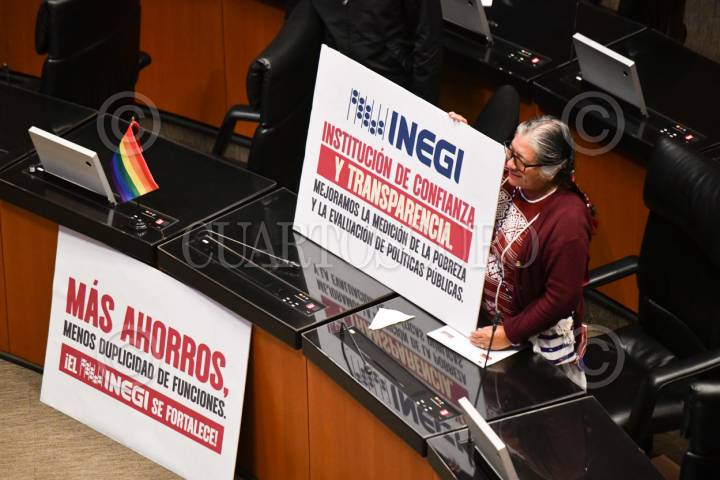 CIUDAD DE MÉXICO, 26JUNIO2025.- Diputados del PRI muestran cartulinas en contra de minuta aprobada en el Senado de la República, por la que el Instituto Nacional de Estadística, Geografía e Informática (Inegi) asumirá las funciones del Consejo Nacional de Evaluación de la Política de Desarrollo Social (Coneval). FOTO: MARIO JASSO/CUARTOSCURO.COM