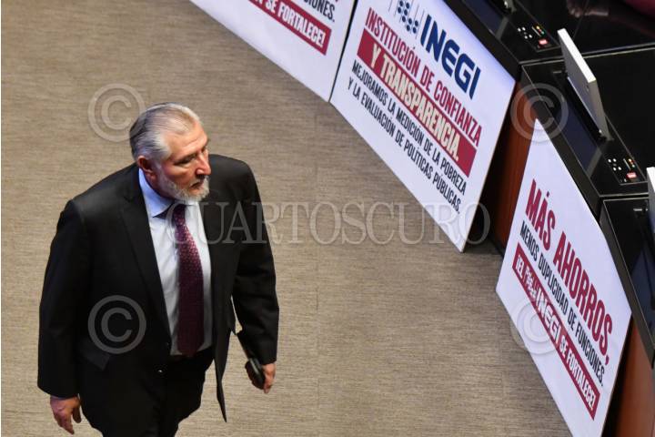 CIUDAD DE MÉXICO, 26JUNIO2025.- Adán Augusto López, senador y coordinador de Morena, durante la sesión extraordinaria del Senado de la República en la que se aprobó la minuta por la que el Instituto Nacional de Estadística, Geografía e Informática (Inegi) asumirá las funciones del Consejo Nacional de Evaluación de la Política de Desarrollo Social (Coneval). FOTO: MARIO JASSO/CUARTOSCURO.COM