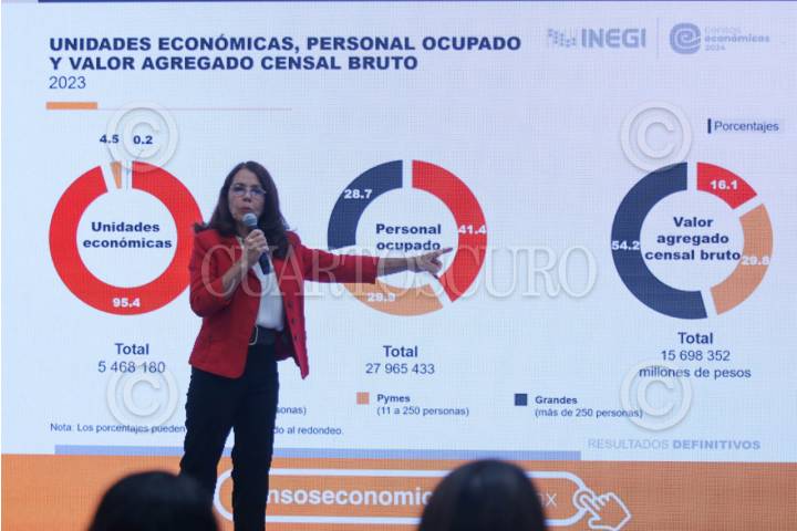 CIUDAD DE MÉXICO, 24JULIO2025.- Susana Pérez Cadena, titula de la Unidad de estadísticas económicas del Instituto Nacional de Estadística y Geografía (INEGI), durante su participación en los Resultados de los Censos del INEGI 2024 presentados en las instalaciones del INEGI. FOTO: GRACIELA LÓPEZ/CUARTOSCURO.COM