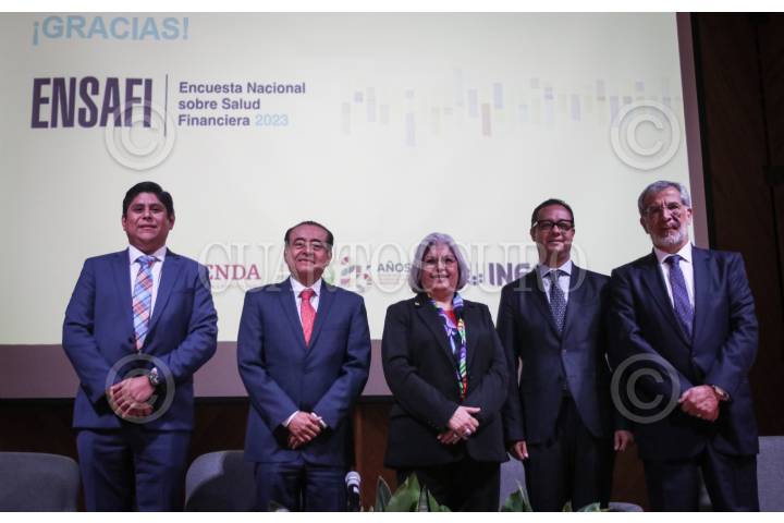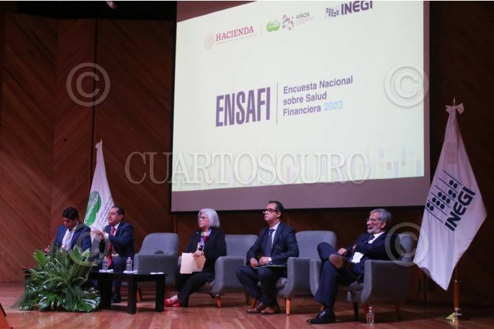 CIUDAD DE MÉXICO, 25JUNIO2024.- Gabriel Yorio González, subsecretario de Hacienda y Crédito Público; Graciela Márquez Colín, president del INEGI; Mauricio Rodríguez Abreu, director general de estadísticas Sociodemográficas del INEGI; Oscar Rosado Jiménez, presidente de la Condusef y Arturo Blancos presidente del INEGI presentaron el primer primer ENSAFI Encuesta Nacional sobre Salud Financiera 2023 que se llevó a cabo en la Comisión Nacional Bancaria y de Valores (CNBV). FOTO: ANDREA MURCIA /CUARTOSCURO.COM