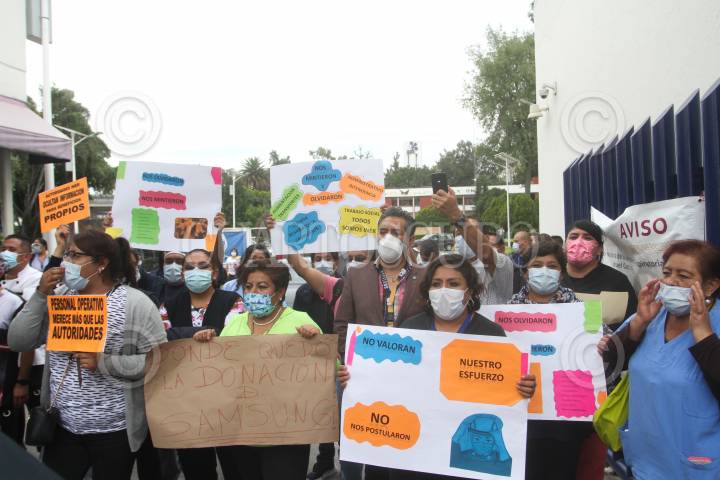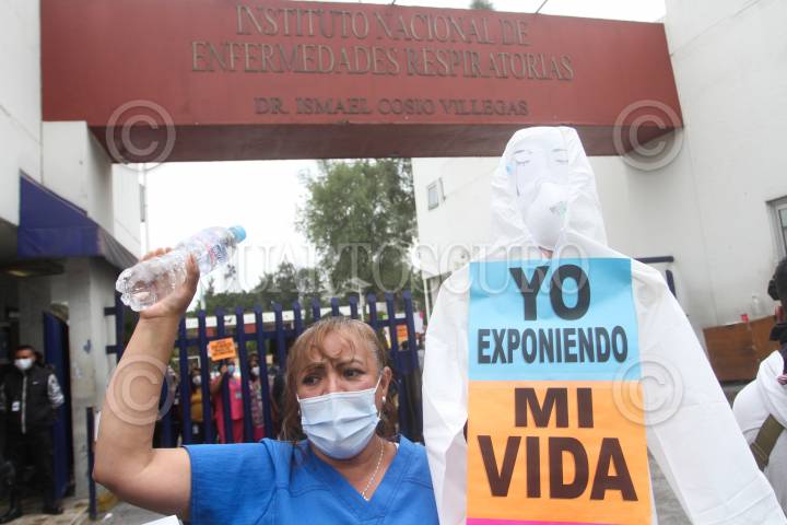 Personal médico del Instituto Nacional de Enfermedades Respiratorias (INER) protestaron afuera del hospital para exigir una solución a la falta de insumos, así como la exigencia de la renuncia de autoridades del INER