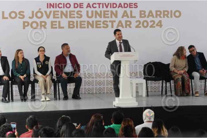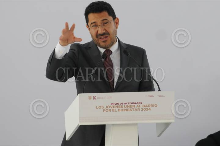 CIUDAD DE MÉXICO, 29ENERO2024.- Martí Batres, jefe de Gobierno de la capital, encabezó un evento donde reunió a cientos de jóvenes para anunciar el inicio del programa los Jóvenes Unen al Barrio. FOTO: DANIEL AUGUSTO /CUARTOSCURO.COM