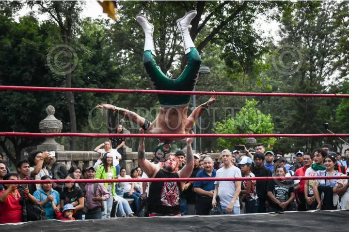 CIUDAD DE MÉXICO, 16MAYO2024.- Con una función de lucha libre amateur y música en vivo, se llevó a cabo la presentación del Festival Jóvenes por la Paz 2024 realizado en el Kiosko de la Alameda Central. Dicho festival contará de dos etapas, la primera arrancará el 24 de mayo en el Monumento a la Revolución y la segunda etapa en octubre, ambas con un amplia cartelera de conciertos y lucha libre. FOTO: MARIO JASSO/CUARTOSCURO.COM