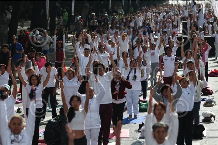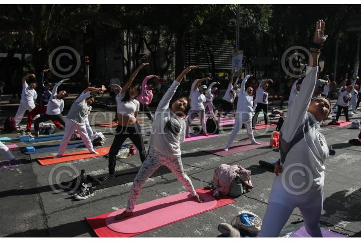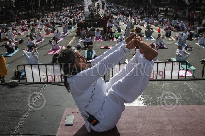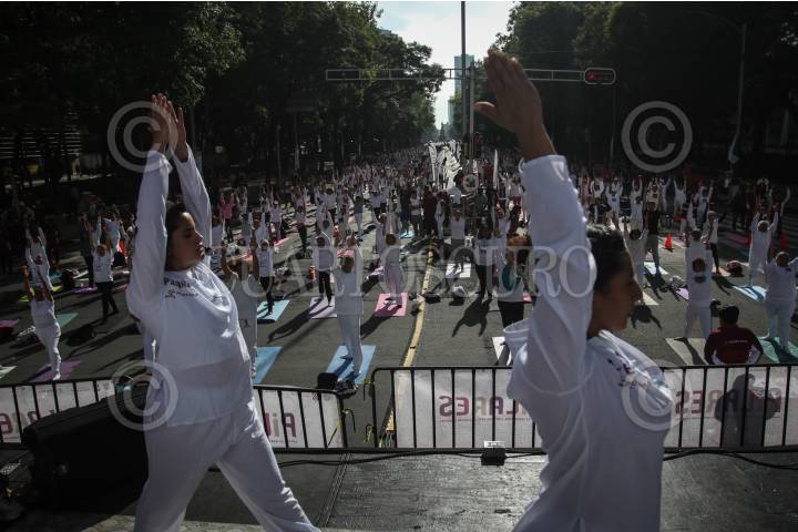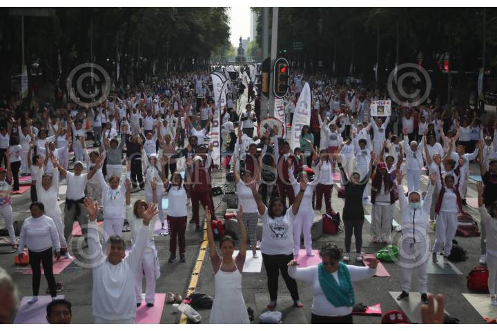 CIUDAD DE MÉXICO, 30JUNIO2024.- Para celebrar el Día Internacional del Yoga se llevó a cabo Clase Magistral de Yoga en la Glorieta del Ahuehuete en paseo de la Reforma a través de Injuve y pilares. Asistieron al rededor de 1,300 personas. FOTO: ANDREA MURCIA /CUARTOSCURO.COM