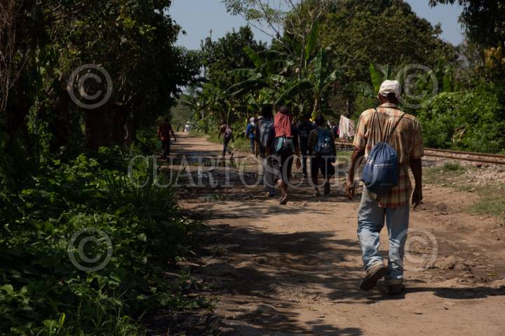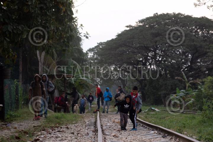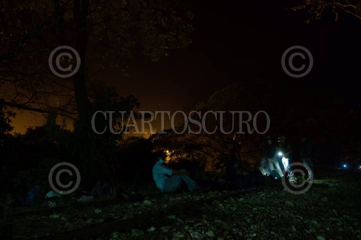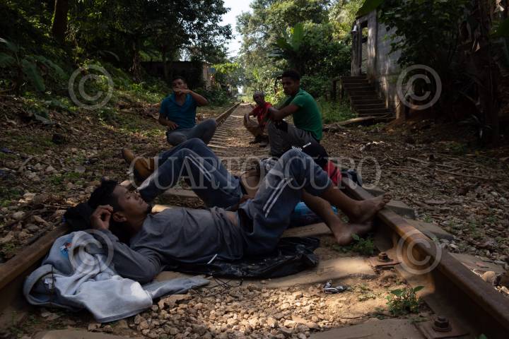 Migrantes hondureños continúan su camino sobre las vías del tren rumbo a Coatzacoalcos donde esperan poder abordar el tren La Bestia para cumplir con su objetivo de llegar a Estados Unidos. Durante la noche algunos deciden descansar para antes del amanecer continuar caminado.
