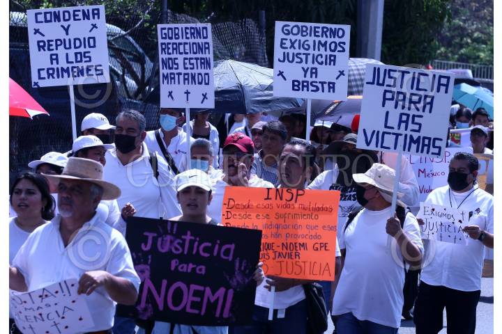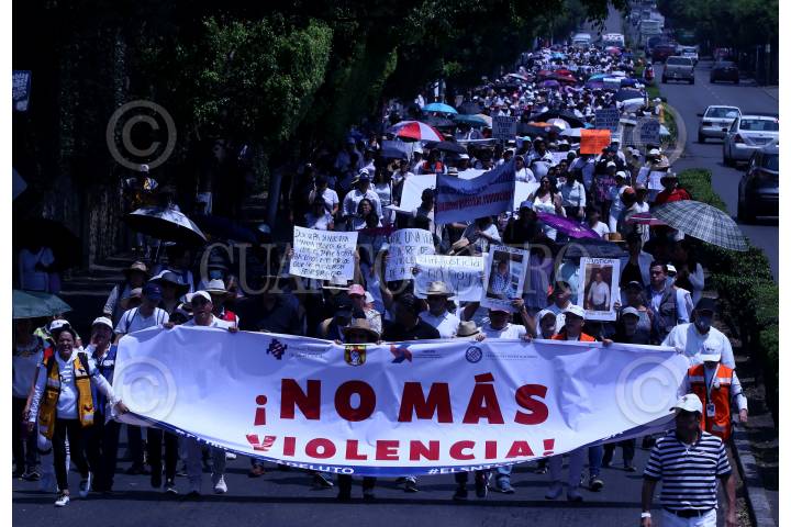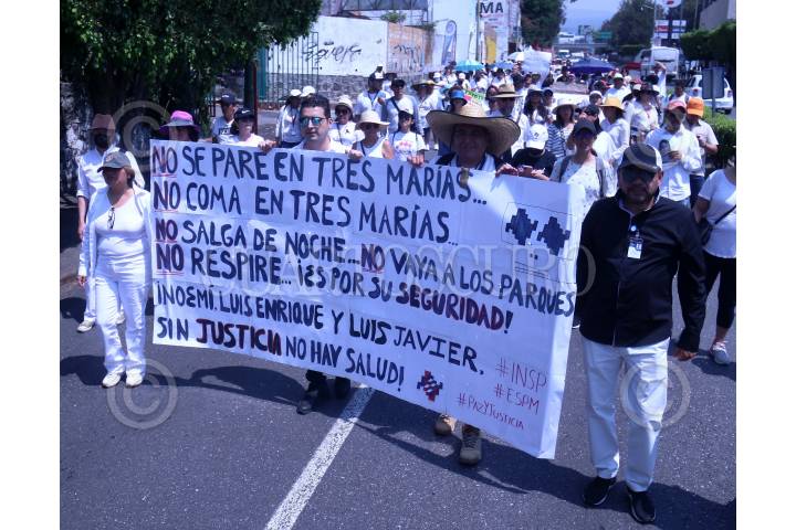 Cientos de trabajadores, estudiantes e investigadores del Instituto Nacional de Salud Pública (INSP) acompañados de víctimas de la violencia y familiares y amigos de los hermanos Luis Enrique y Luis Javier García Díaz y Noemi Guadalupe Arias Sosa, marcharon desde las instalaciones del INSP hasta el zocalo de la ciudad en demanda de seguridad pública.