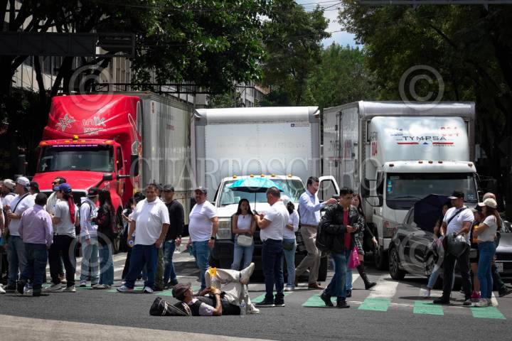 CIUDAD DE MÉXICO 02JULIO2025.- Cierre de Avenida Insurgentes y Eje 6 parte de empresarios y trabajadores, principalmente del sector de bares y restaurantes quienes exigen una reunión con autoridades del Instituto de Verificación Administrativa (INVEA), por supuestos cierres irregulares de negocios. FOTO:ROGELIO MORALES /CUARTOSCURO.COM